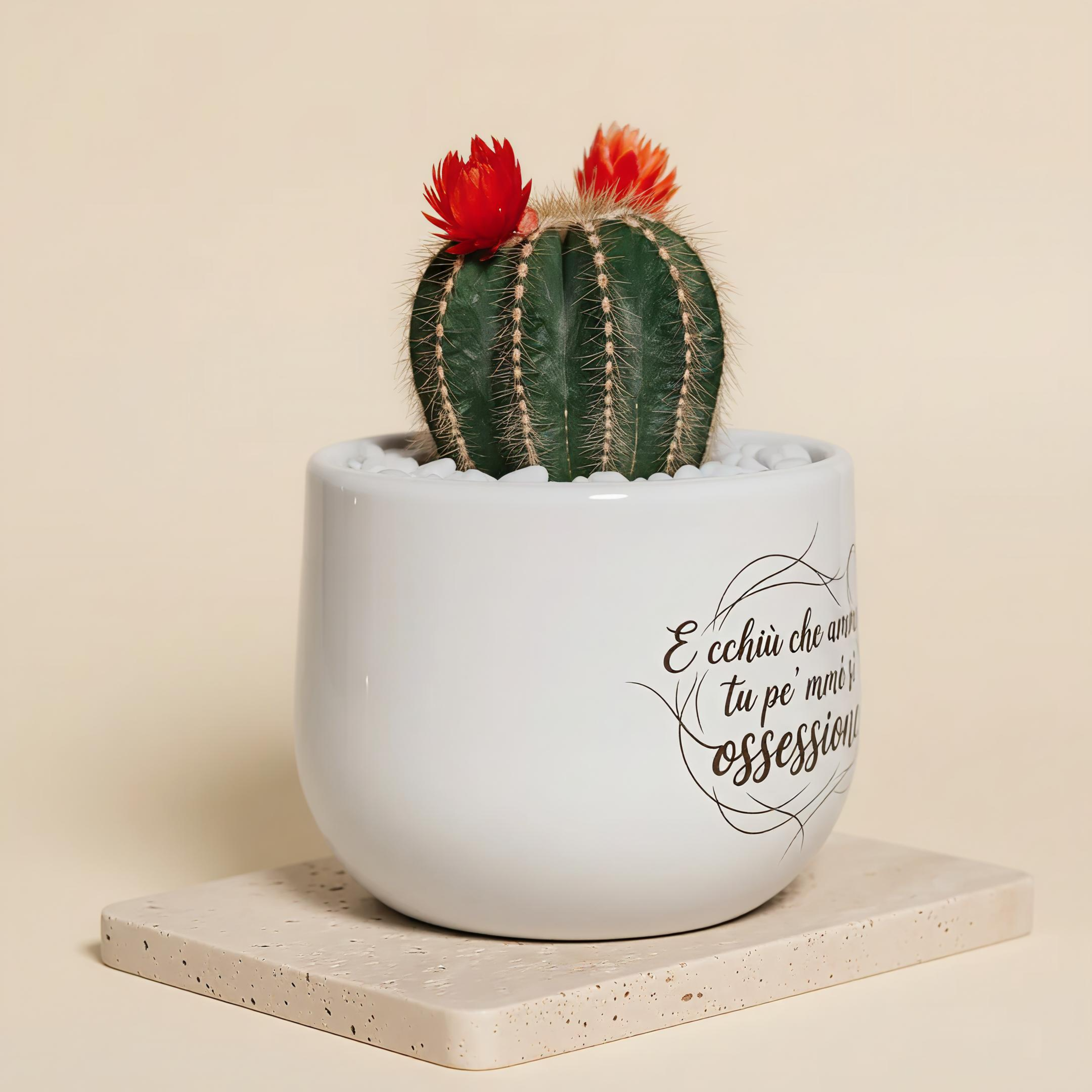 Quando “amore” non basta più a descrivere quello che provi: “E cchiù che ammore, tu pe'mmé sî ossessione”. Un vasetto in ceramica con piantina vera, pensato per chi vive i sentimenti in modo intenso, viscerale, alla napoletana. Un pezzo che profuma di musica, vicoli, mare e notti passate a pensare sempre alla stessa persona.