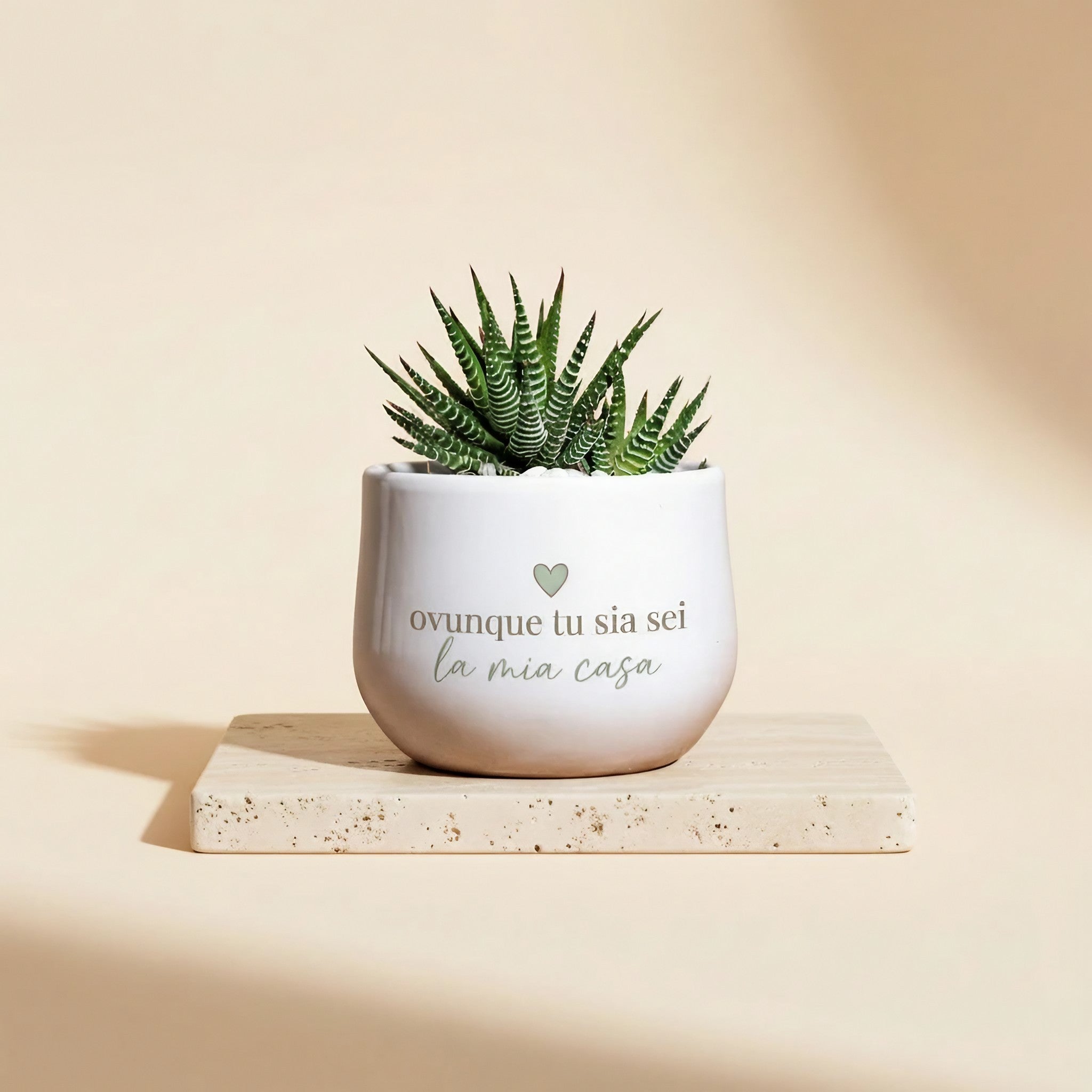 Un vasetto che parla di vicinanza, anche quando le distanze sono grandi: “ovunque tu sia sei la mia casa”. Un regalo delicato, premium e pieno di significato.