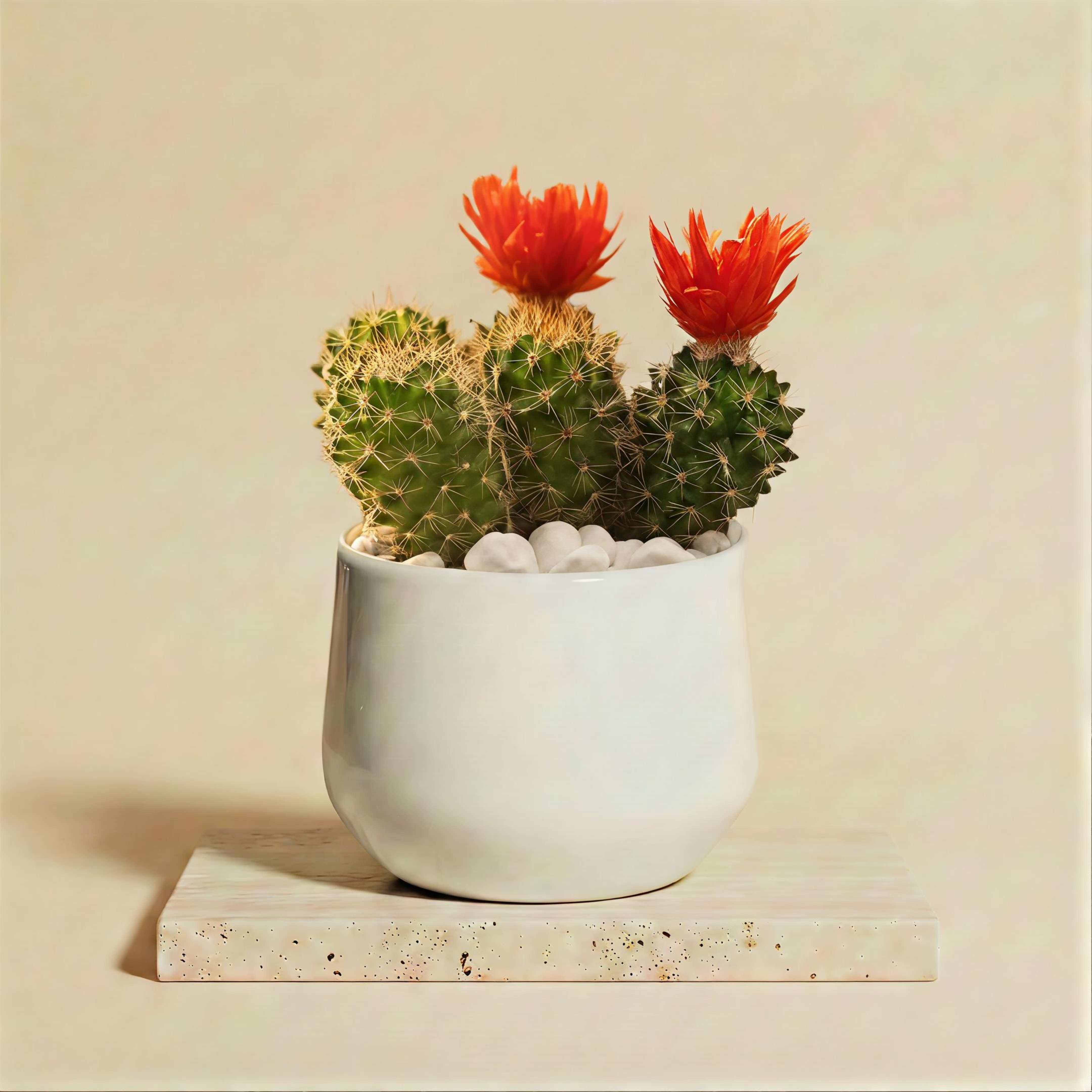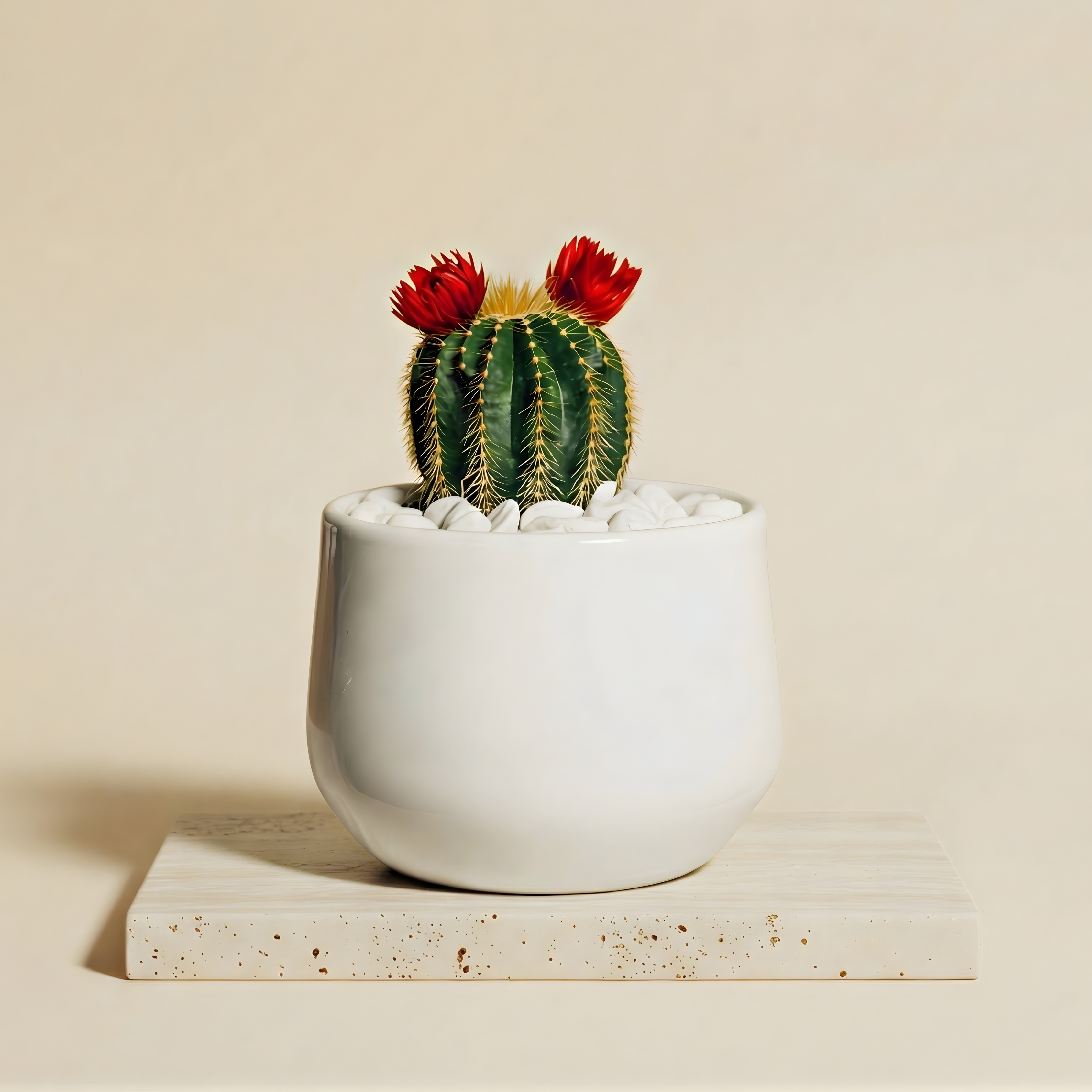Il cactus con fiore verrà consegnato senza il fiore ancora sbocciato: la fioritura avverrà successivamente, con il tempo e le giuste cure.